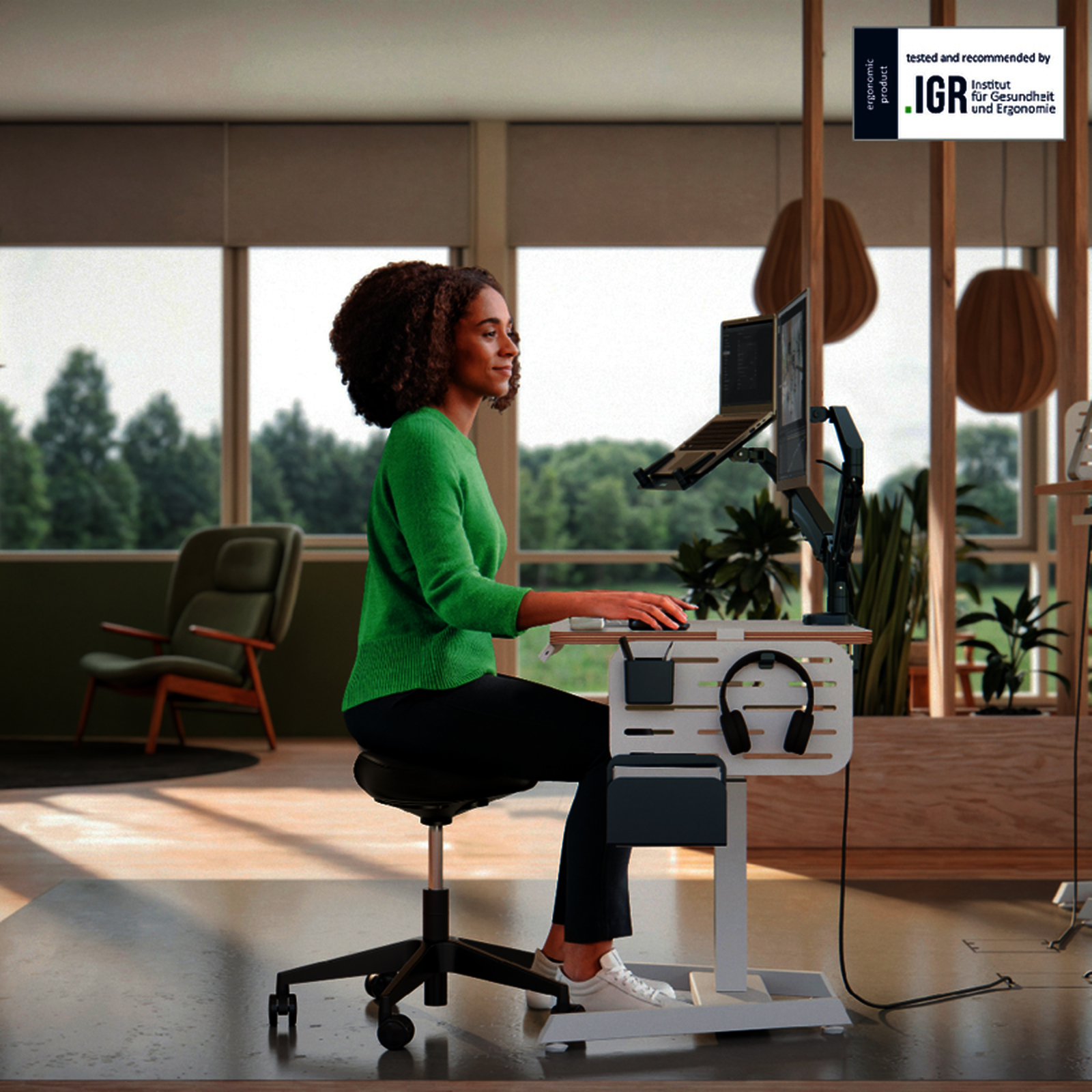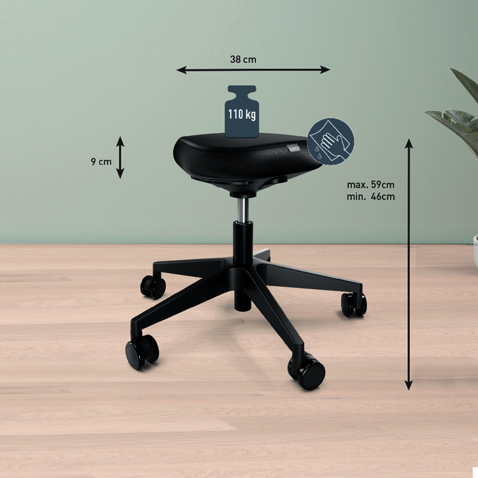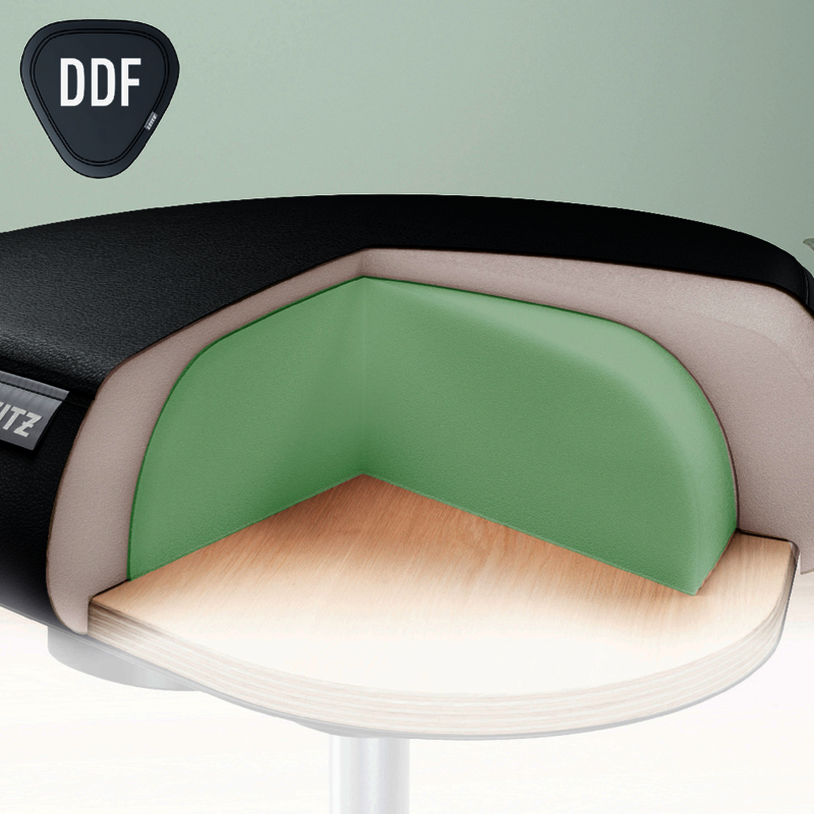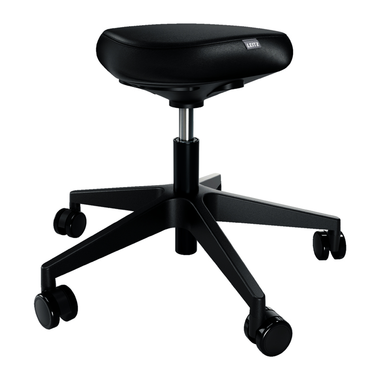 Tabouret ergonomique Leitz Ergo avec assise triangulaire en mousse double densit?, hauteur r?glable 46-59?cm, pivot 360? et roulettes. Confort, posture et mobilit? optimis?s.