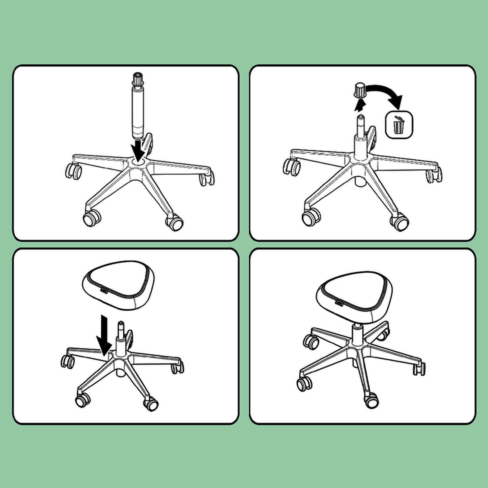 1 TABOURET A ROULETTES ASSIS DEBOUT