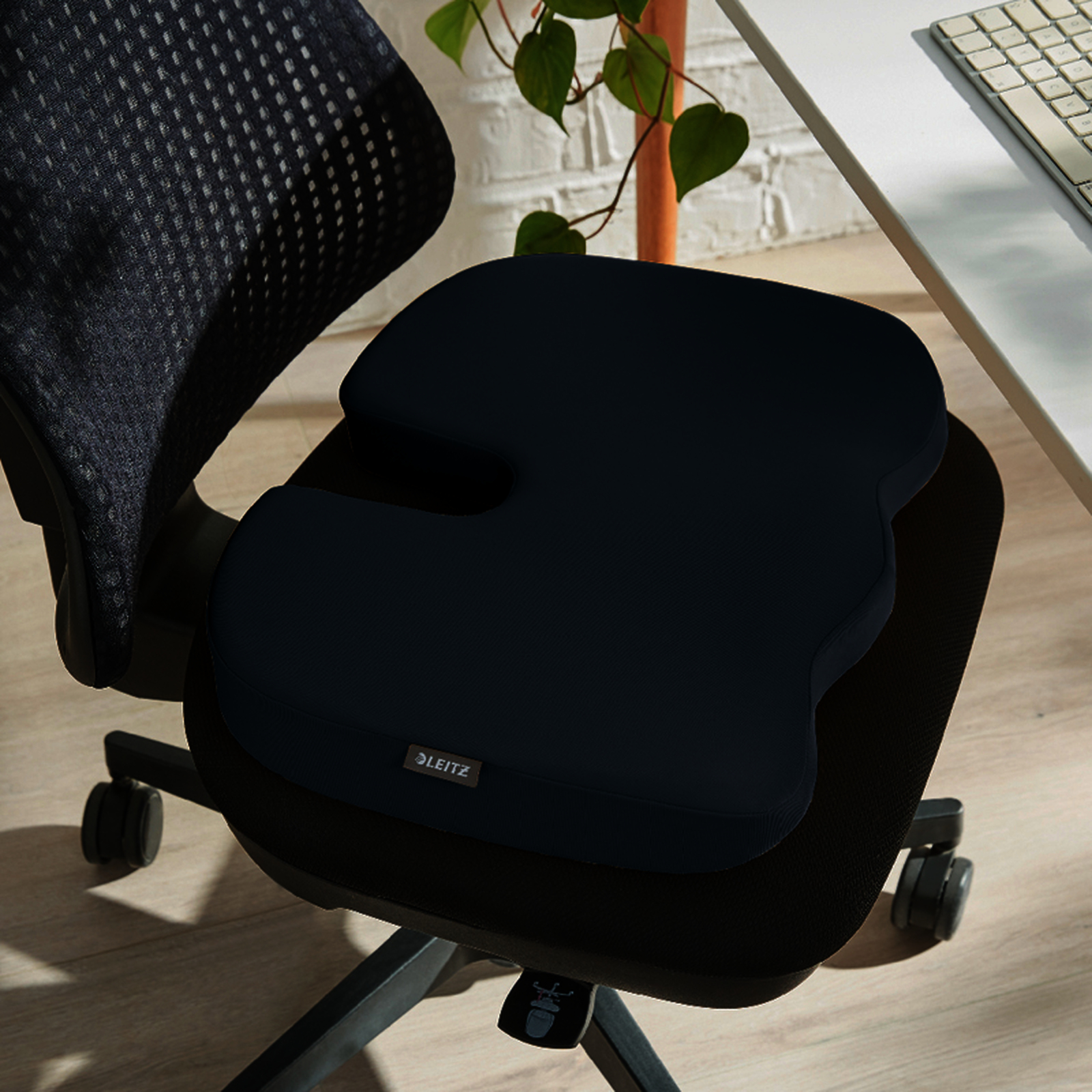 Coussin de si?ge Leitz Ergo Cosy pour posture saine et confort durable. R?duit fatigue, raideur et pression vert?brale. Utilisable partout. Design minimaliste ?l?gant.