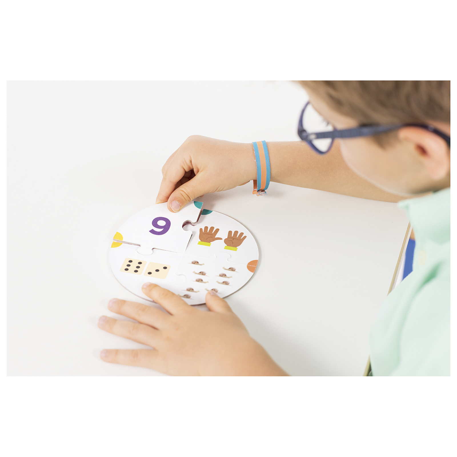 L’enfant doit retrouver différentes représentations d’un même nombre pour former une roue, puis il la retourne pour s’autocorriger. Il peut suivre la comptine numérique, suivre l’ordre croissant/décroissant ou rechercher un nombre donné.COMPÉTENCES DÉVELOPPÉESDénombrer une quantité.Reconnaître et associer différentes représentations du nombre.Mémoriser les nombres. Lot de 2 jeux.Chaque boîte contient :11 roues des nombres prédécoupées en 4 pièces, soit 44 pièces. Nombres impairs en rouge ; nombres pairs en bleu.Ø roue : 13 cm.