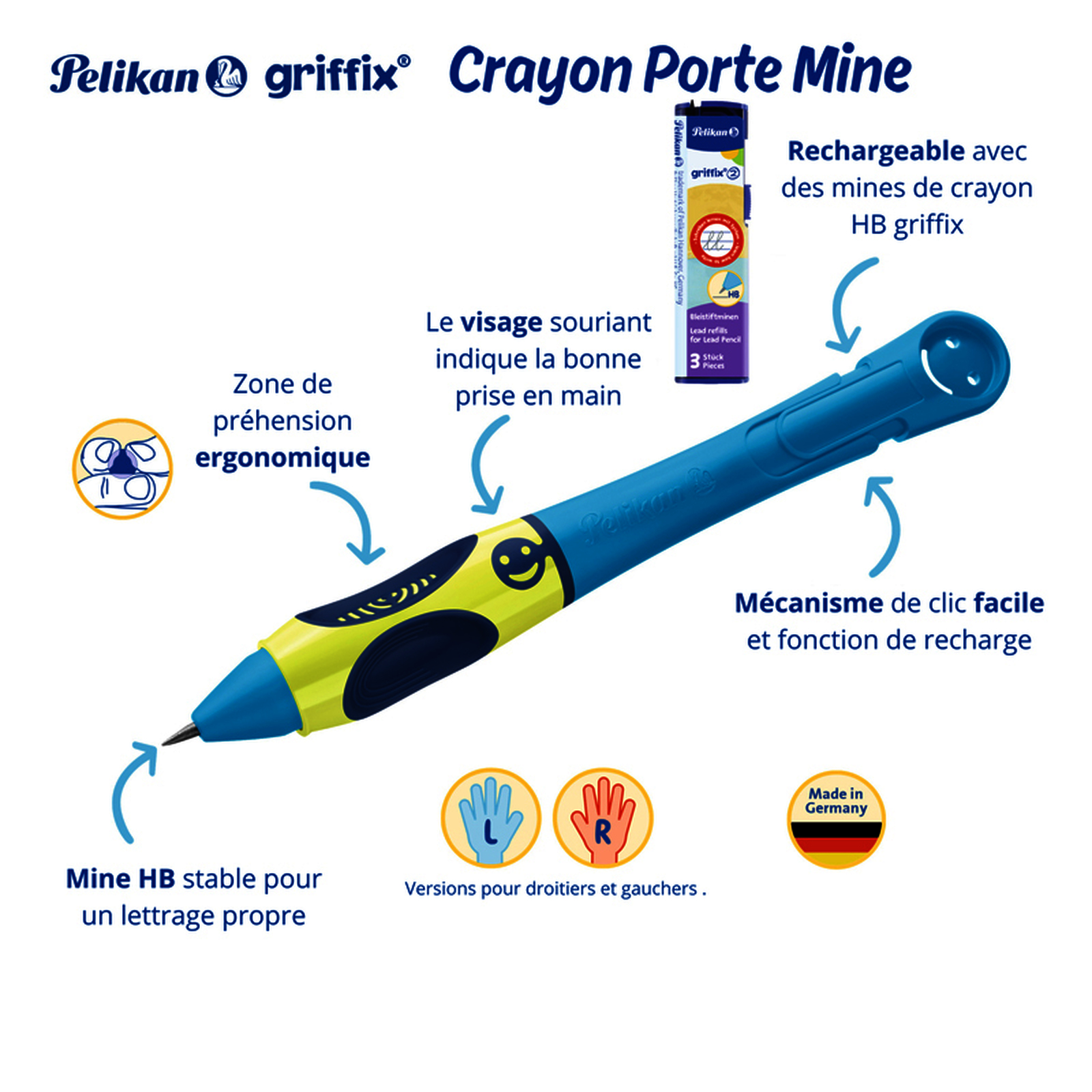 Pour une ?criture pr?cise des premi?res lettres : D?s le d?but, dans la position d'?criture id?ale. Duret? : HB.