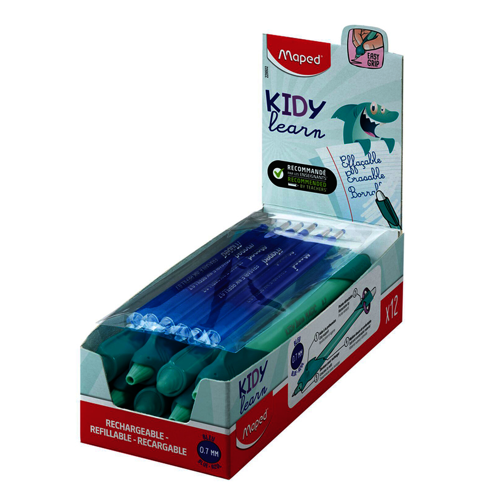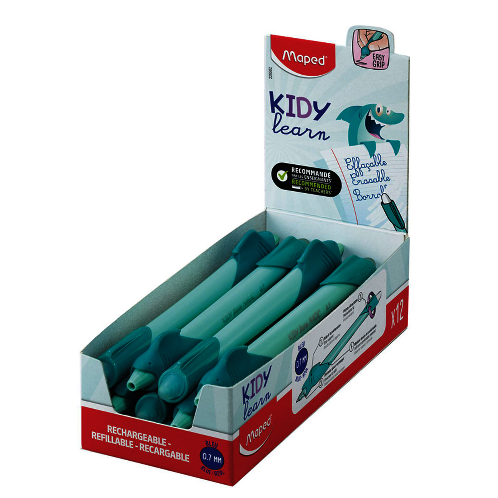 1 CLASSPACK 12 STYLOS D'APPRENTISSAGE EFFACABLE KIDY LEARN REQUIN + 6 RECHARGES OFFERTES