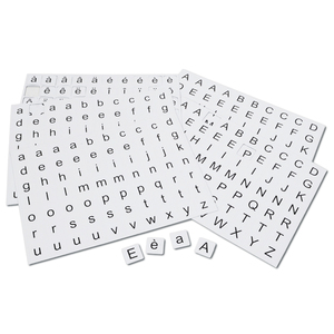 Pack Elève : matériel de petit format, idéal pour la manipulation. Lettres imprimées sur caoutchouc magnétique blanc. Contenu : 140 lettres en script majuscule et 210 lettres en script minuscule - Dim. (L x H) : 30 x 30 mm