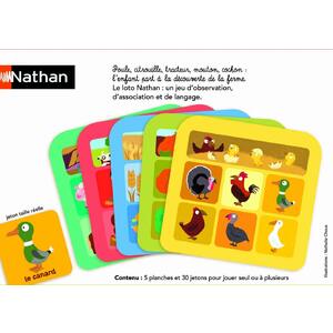 Pour découvrir la vie à la ferme et les animaux à travers les 5 planches du jeu : le poulailler, l’étable, le potager, les champs... Le premier qui a complété sa planche a gagné !Contenu : 5 planches et 30 jetons