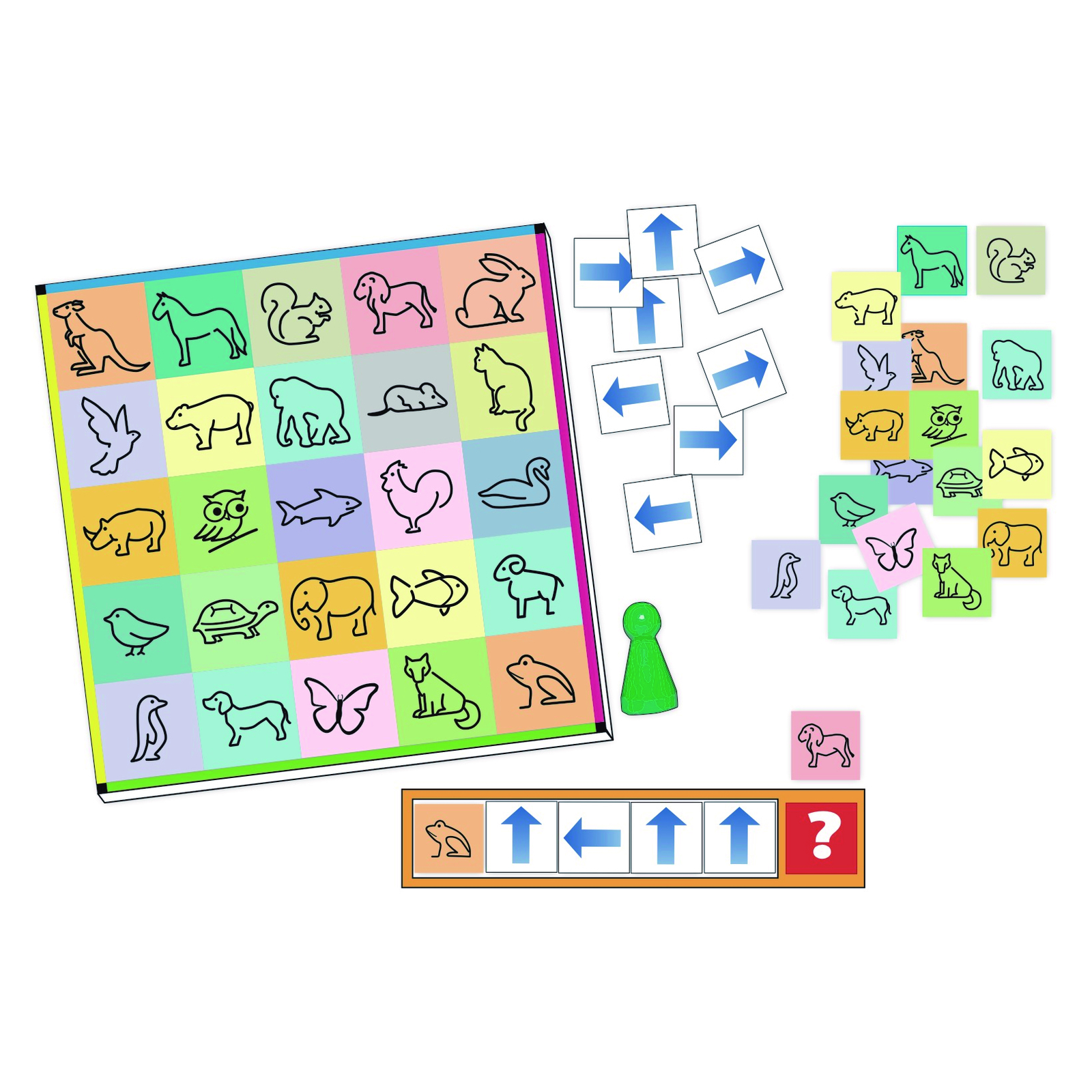 Code avec étapes : Si vous savez comment fonctionne le «langage des flèches», vous êtes prêt à passer à l'étape suivante, à savoir la création et le décodage d'un code en 4 étapes. Si vous avez bien créé le code et que votre coéquipier le déchiffre correctement, vous vous retrouverez avec le même animal!