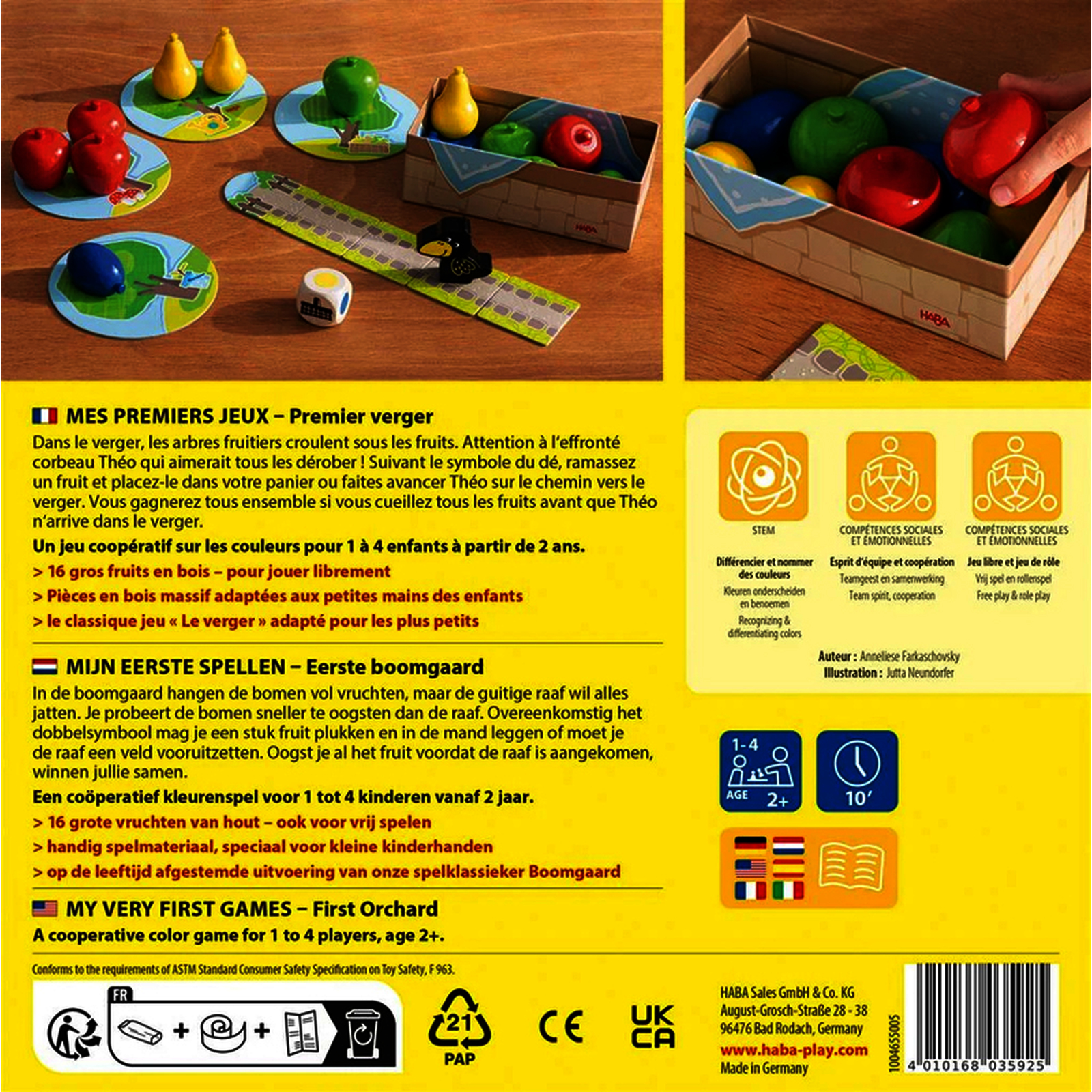 But de jeu : jeu coop?ratif d?observation et rapidit?. Les enfants cueillent des fruits avant que le corbeau Th?o n?envahisse le verger, d?veloppant attention, travail d??quipe et prise de d?cision.