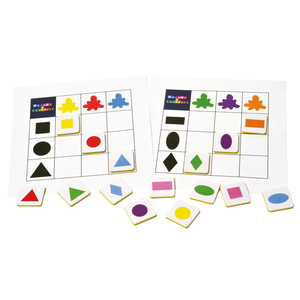 Ce jeu magnétique permet aux enfants de 3 à 5 ans de se familiariser aux formes et aux couleurs de façon ludique. De nombreux jeux sont possibles pour 4 enfants, de l'observation jusqu'à la stratégie.Contenu : 1 plateau 28 x 28 cm en 4 pièces, 64 magnets formes colorées, 16 magnets da validation, 2 dés 8 faces et une notice avec 8 idées de jeux