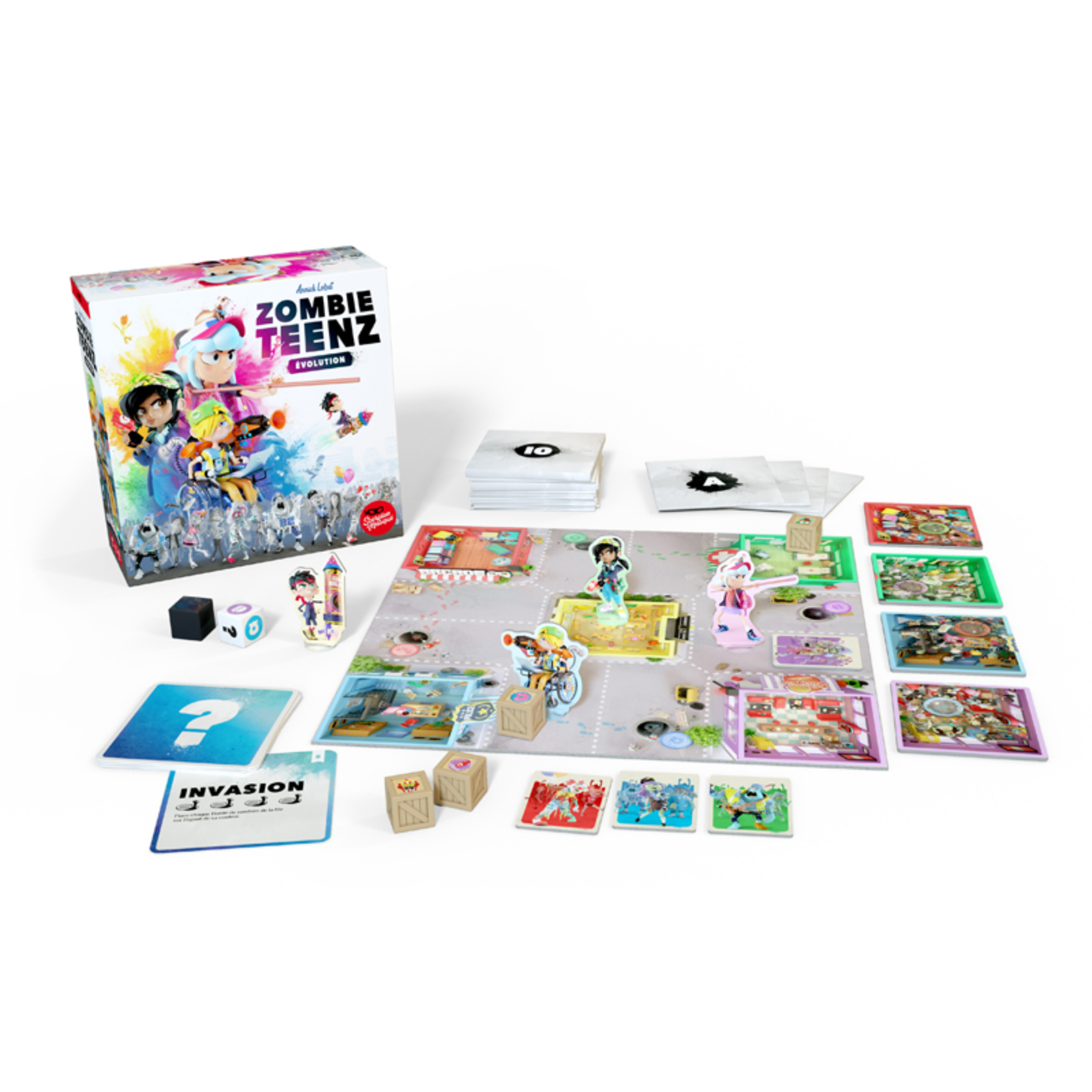 But du jeu : les zombies ont envahi ton école! Rassemble tes amis autour de ce jeu coopératif et développez ensemble la meilleure stratégie pour repousser ces vilaines créatures! Zombie Kidz est un jeu évolutif: plus tu joues et remplis des missions spéciales, plus le jeu évolue.Contenu : 1 dé zombie, 4 pions cadenas, 4 pions héros, 8 supports en plastique, 8 pions zombie, 1 plateau double face, 1 livret de règles et 13 enveloppes Évolution scellées2 à 4 joueurs - Durée : 15 min