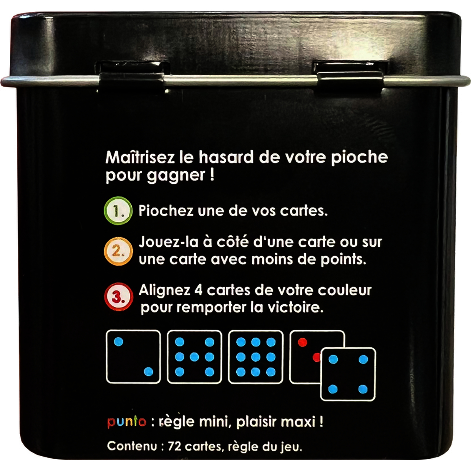 Punto est un jeu de cartes ?ducatif o? les enfants forment des suites logiques en alignant 4 cartes de m?me couleur. D?veloppe la logique, l?observation et la strat?gie.