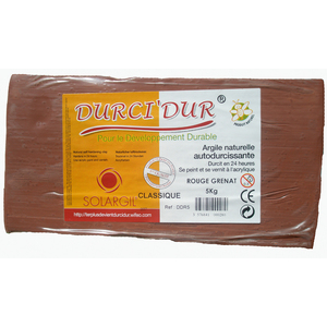 Argile naturelle autodurcissante en 48 heures à l'air pour donner des réalisations résistantes aux chocs. Norme EN71-3. Peut être peinte ou vernis une fois sèche.Le pain de 5 kgUne fois ouvert, le pain se conserve dans un sac plastique (idéalement dans le bac à légumes d'un réfrigérateur).