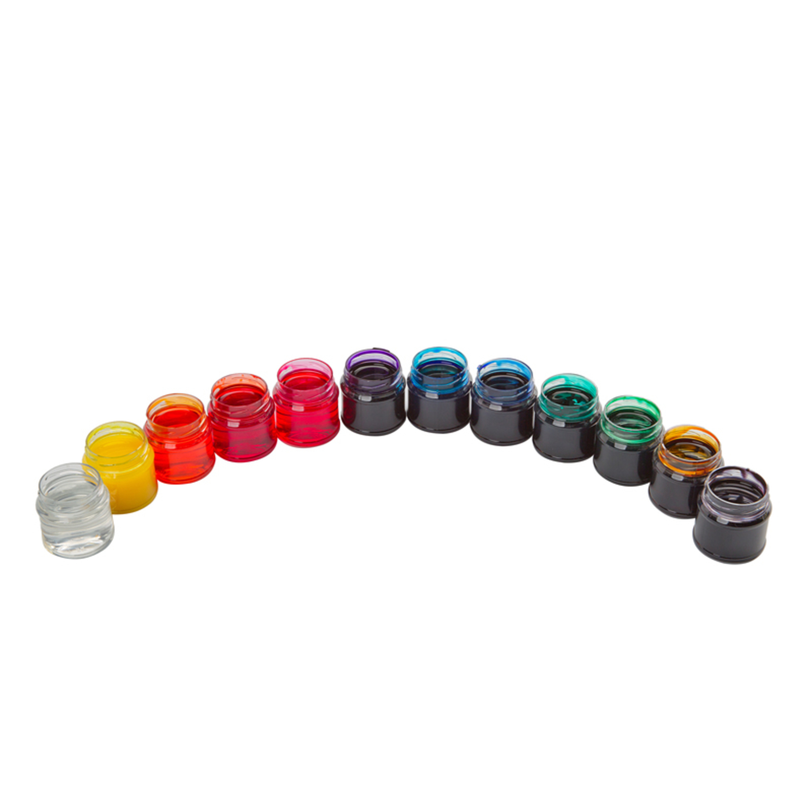 Des effets tout en transparence pour des décorations sur supports lisses : rhodoïd, plexiglas, verre, émail, métal à repousser... Prêt à l'emploi. Assortiment de 12 flacons de 50 ml - Incolore, jaune, orange, rouge, rose, violet, bleu clair, bleu foncé, vert clair, vert foncé, terre de sienne et noir