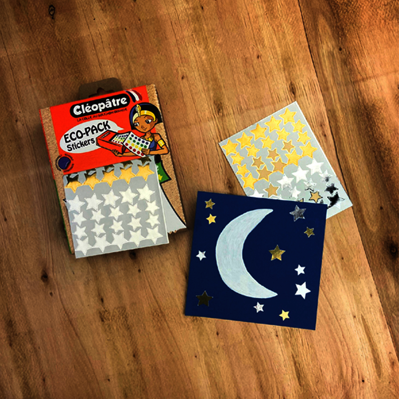 1 BOITE ECOPACK 2400 GOMMETTES ETOILES OR ET ARGENT TAILLES 12 ET 20 MM