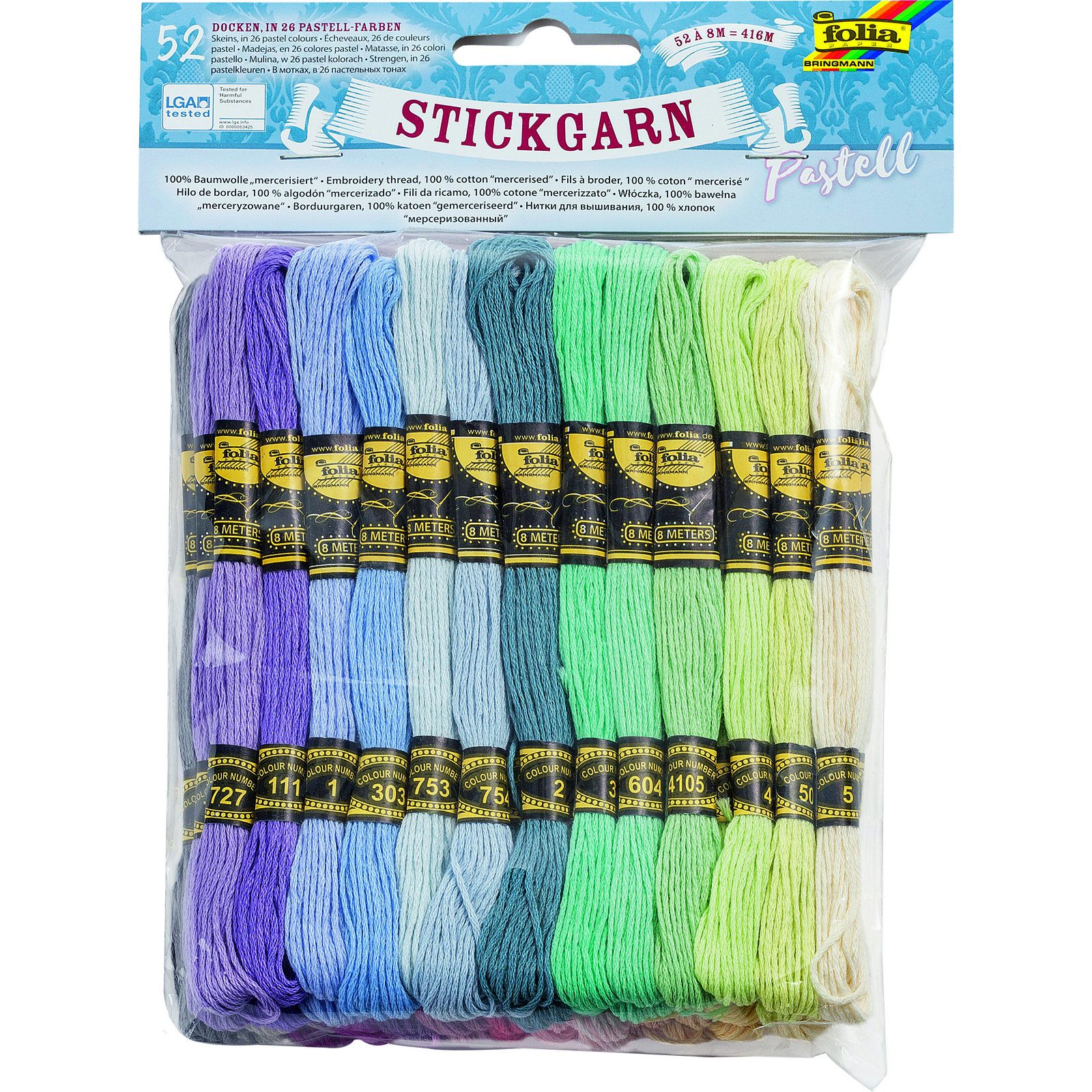 27 couleurs pastels, (L) : environ 8 m - Lot de 52